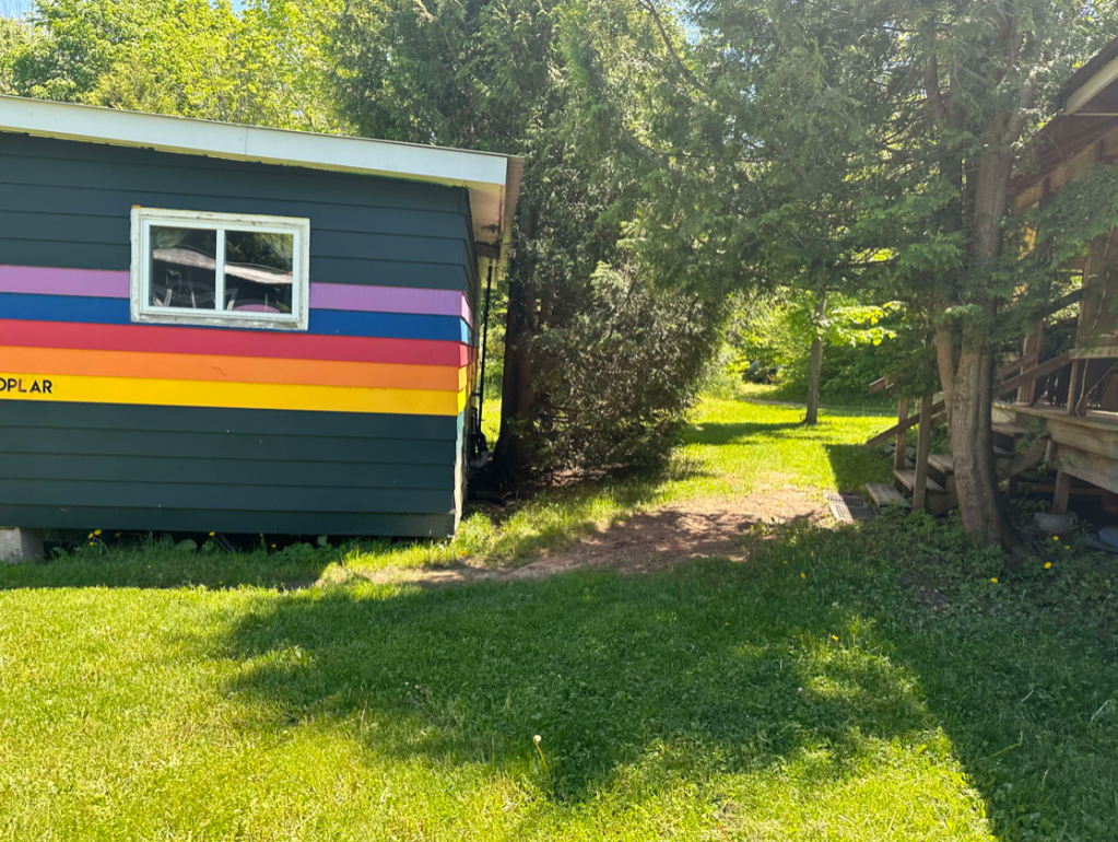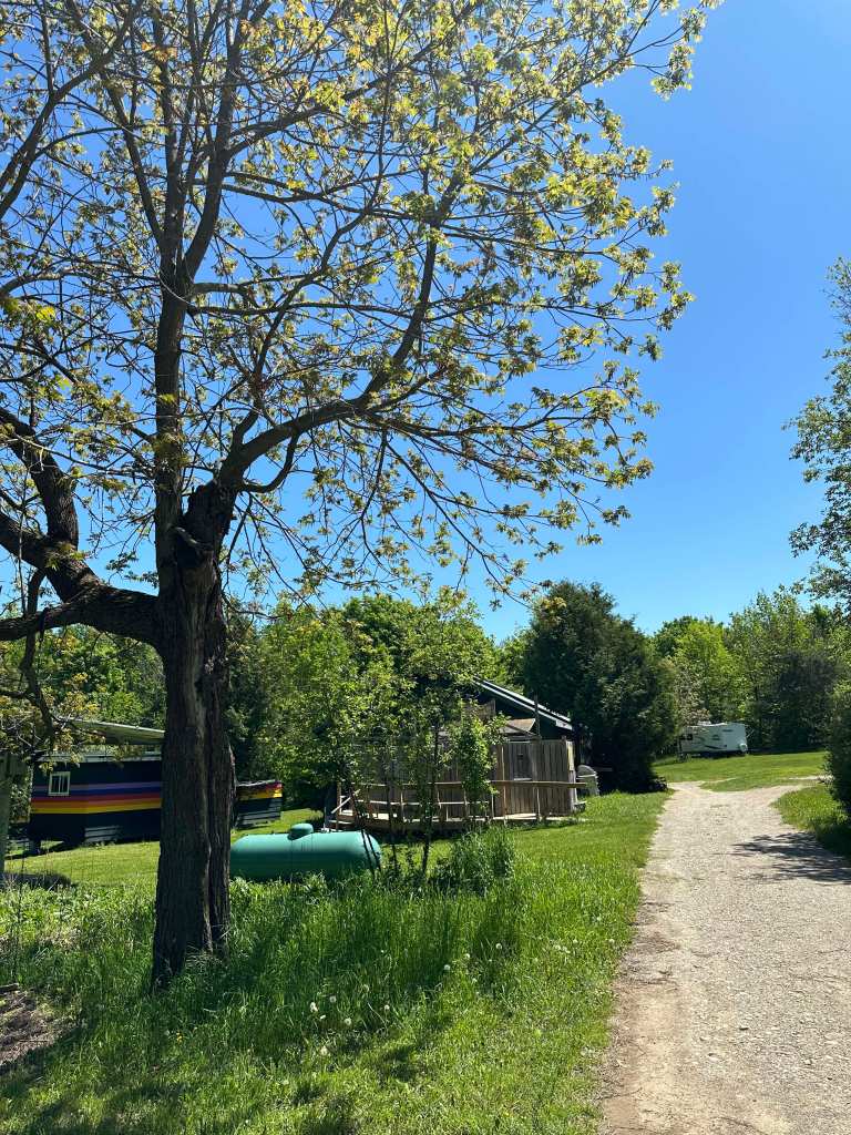 Rosie’s Cottage and our Sunday Service area (When the weather is nice, we have our Unitarian Universalist Sunday services beside the closest tree).