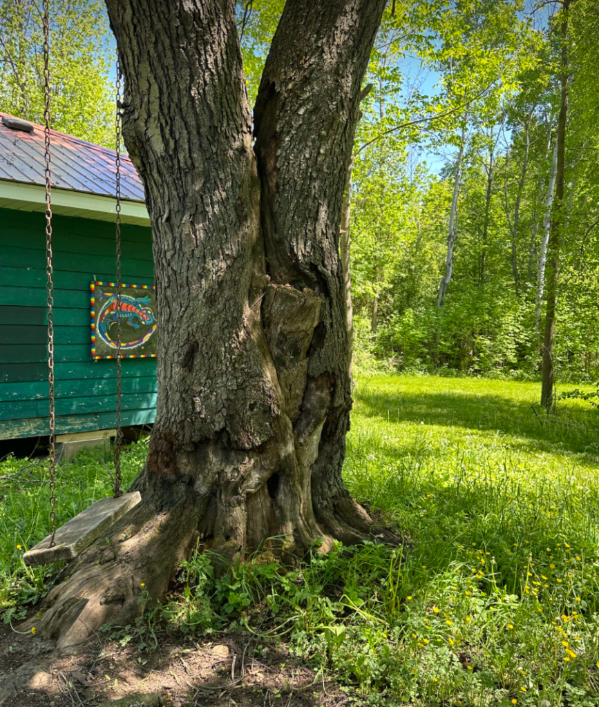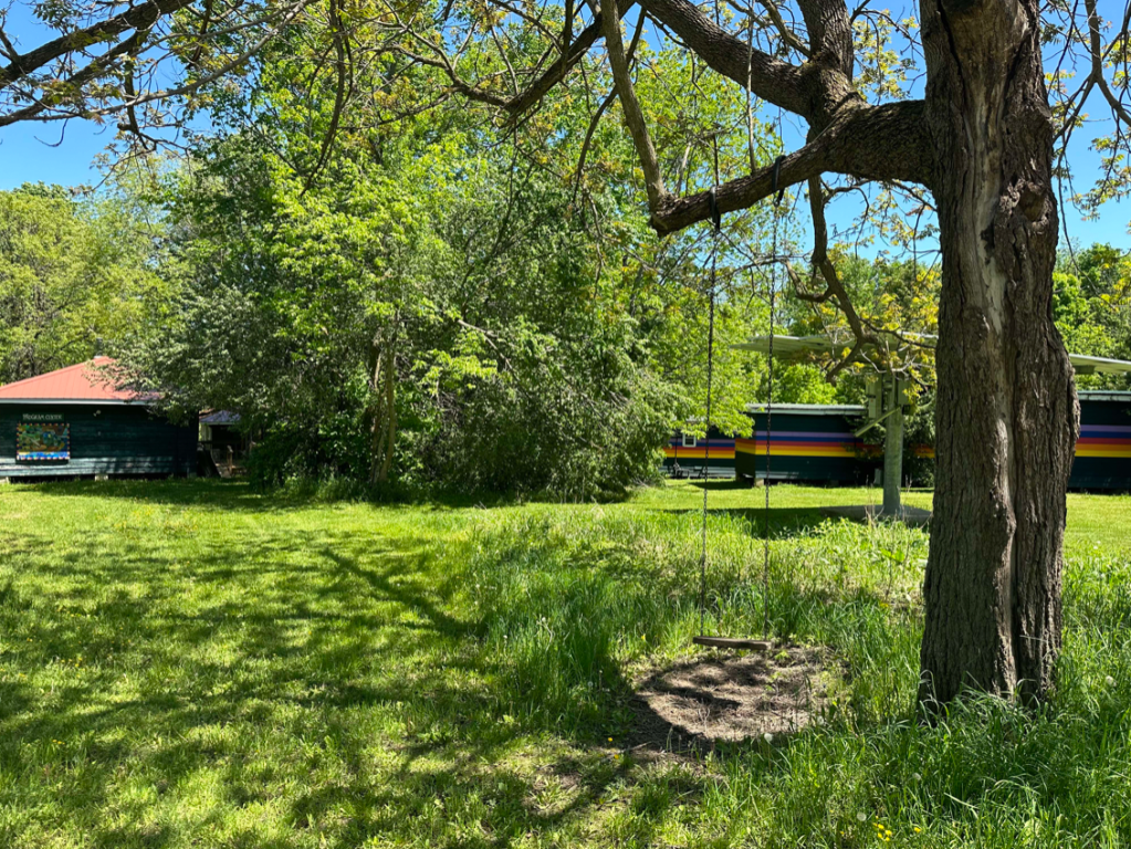 Tree swing beside the Program Centre (PC) and Rosie’s Cottage